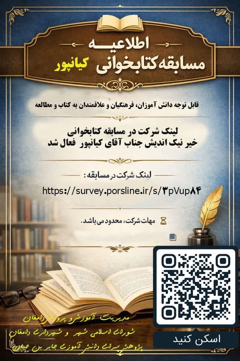 فراخوان مسابقه بزرگ کتابخوانی در دامغان؛ فرصتی برای آشنایی با اسوه خیرخواهی، حاج علیاکبر کیانپور